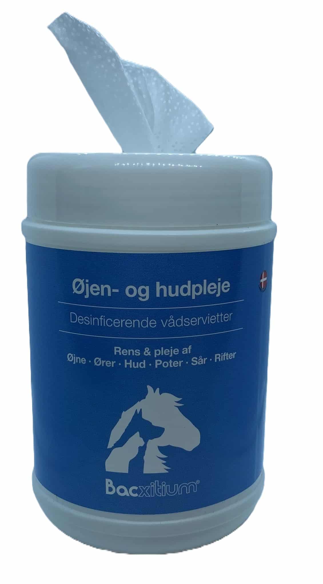 Bacxitium® eliminerer skadelige bakterier, reducerer bakterieniveauet i såret og på huden samt bistår den naturlige helingsproces. Bacxitium® indeholder 100% naturligt aktivstof som også bliver produceret af dyrets eget immunforsvar til at eliminere skadelige bakterier. Bacxitium® er helt fri for kemi men er både virksomt, mildt og smertefrit i brug.